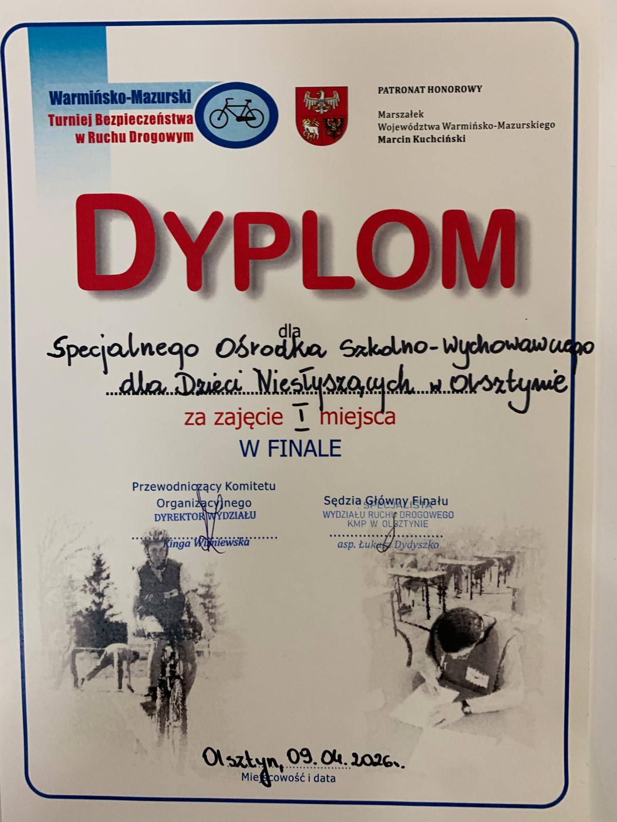 Z dumą informujemy, że uczniowie klasy VIIIA i VIIB – Paweł, Damian oraz Kacper – reprezentowali nas w Warmińsko-Mazurskim Turnieju Bezpieczeństwa w Ruchu Drogowym (eliminacje miejskie). Nasi uczniowie spisali się znakomicie, zdobywając 1 miejsce!