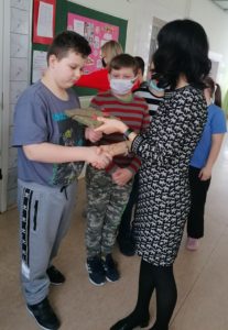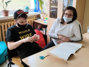 Uczniowie VII klasy podczas wizyty w bibliotece uczyli się jak można przedłużyć „życie” książek”. Wymaga to precyzji i staranności, wszyscy poradzili sobie znakomicie. Przy następnej okazji będą starali się obłożyć książki, dzięki czemu nie ulegną one zniszczeniu.