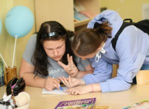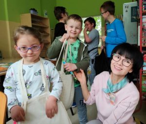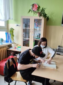 Każdy, kto chciałby ratować stare, ale wartościowe woluminy (czyli książki), jest mile widziany w bibliotece. Tak robią Ola K. i Magda. B. , które często przychodzą podczas przerw, aby wspomóc w pracy panią bibliotekarkę.