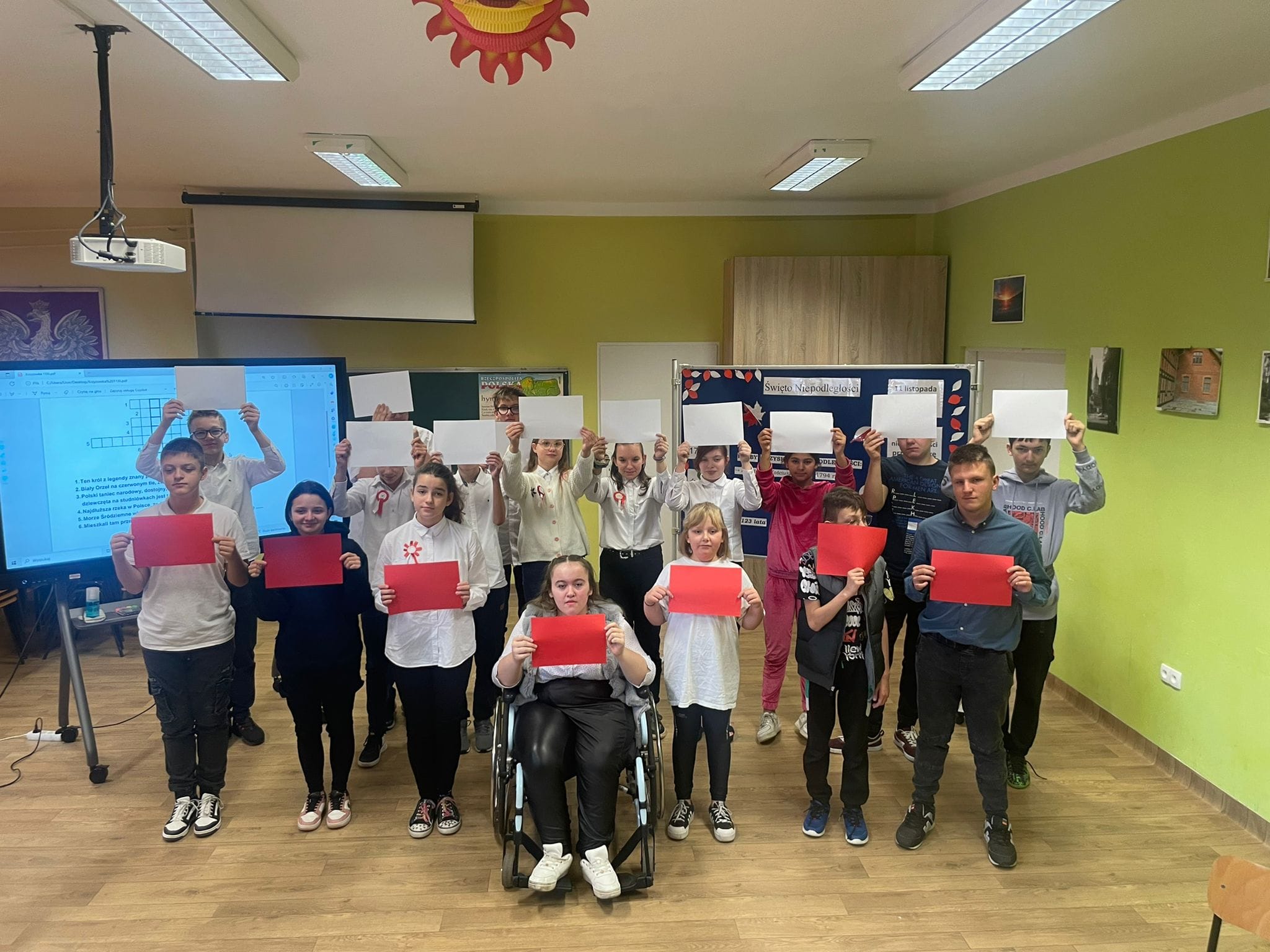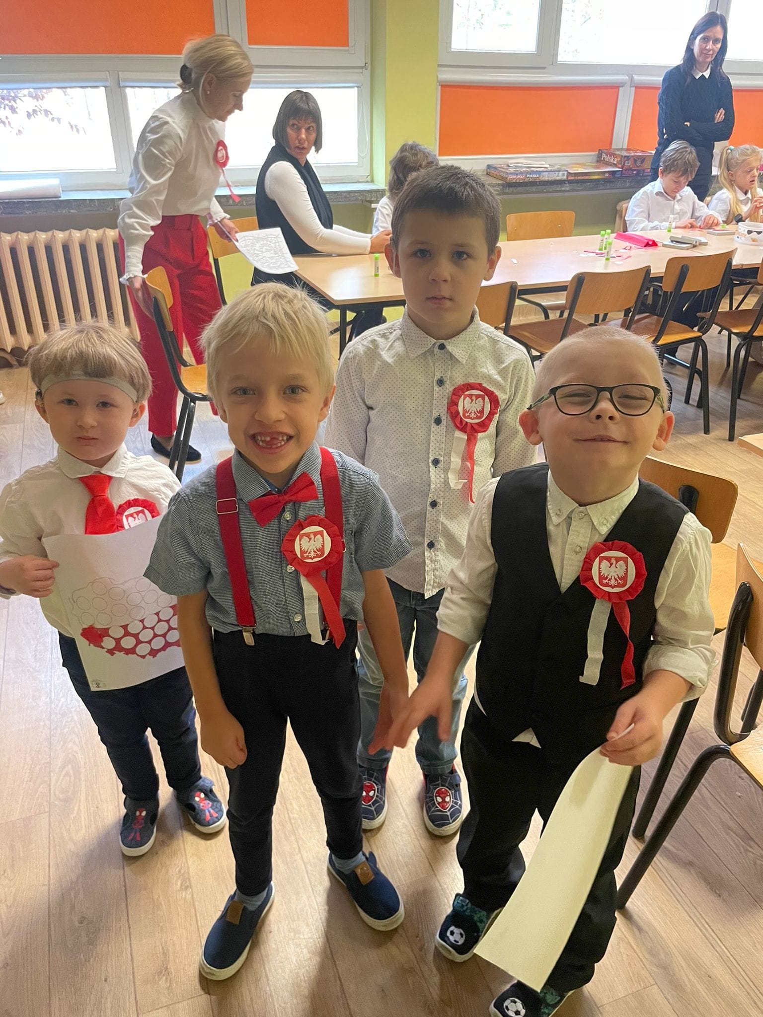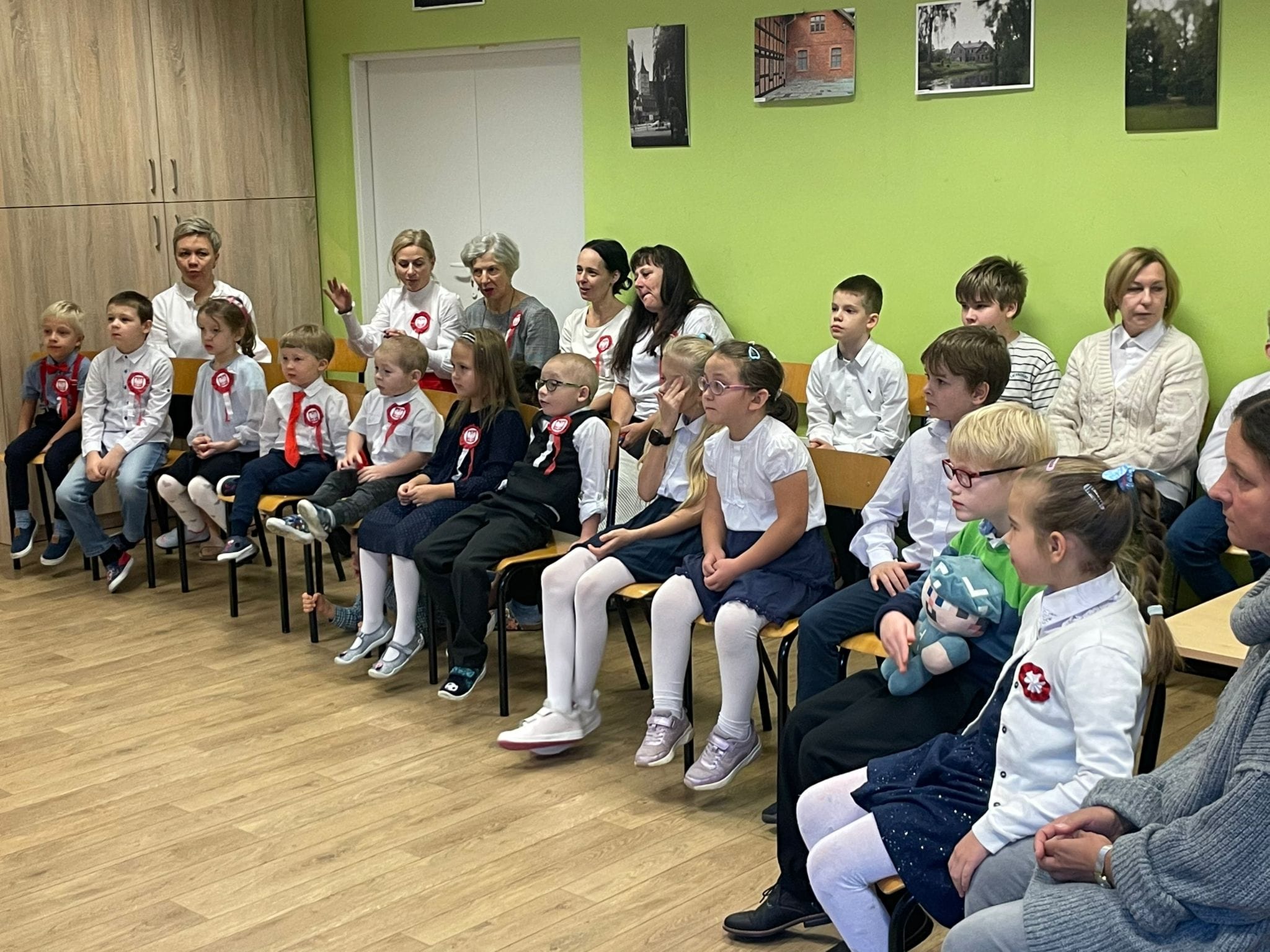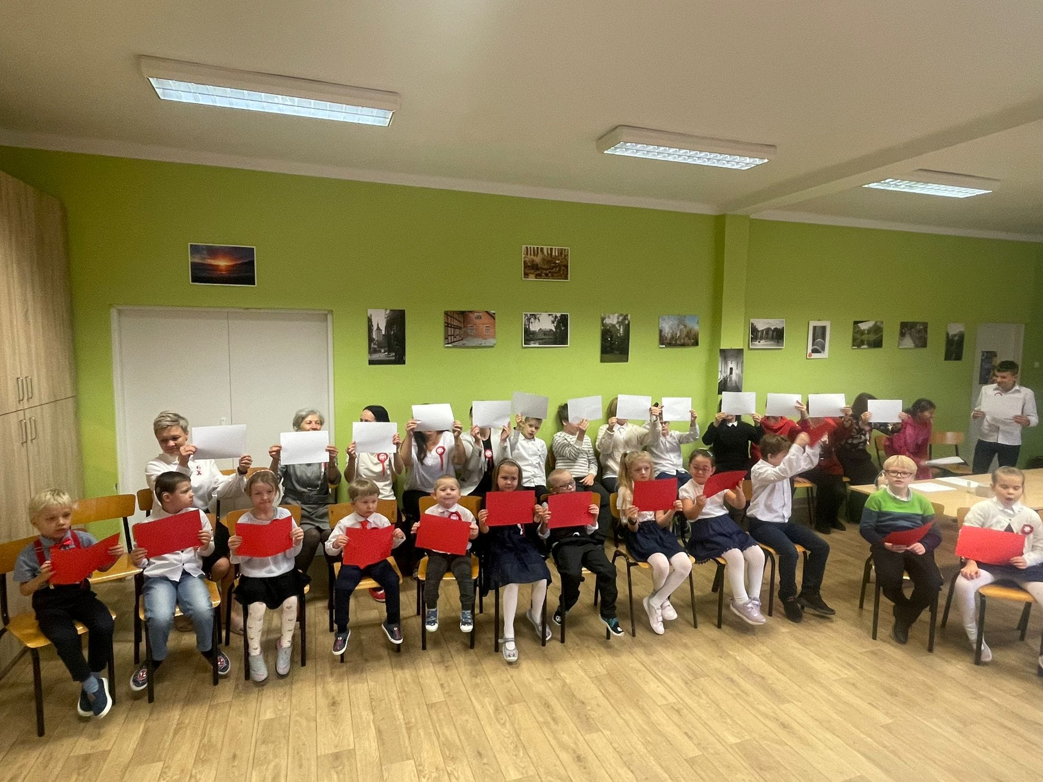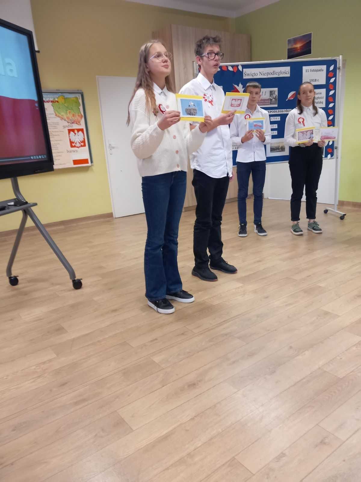 Uczniowie klas młodszych uczestniczyli w warsztatach z okazji Święta Niepodległości. Wspólnie odśpiewali hymn narodowy oraz przypomnieli sobie symbole narodowe.
