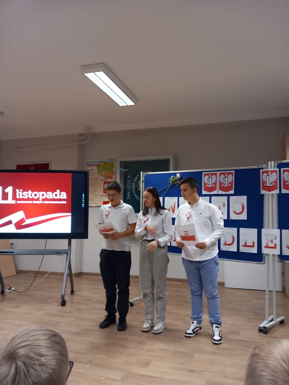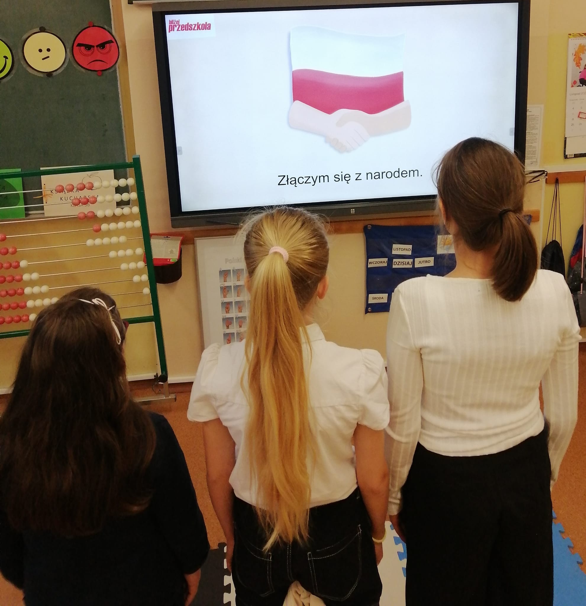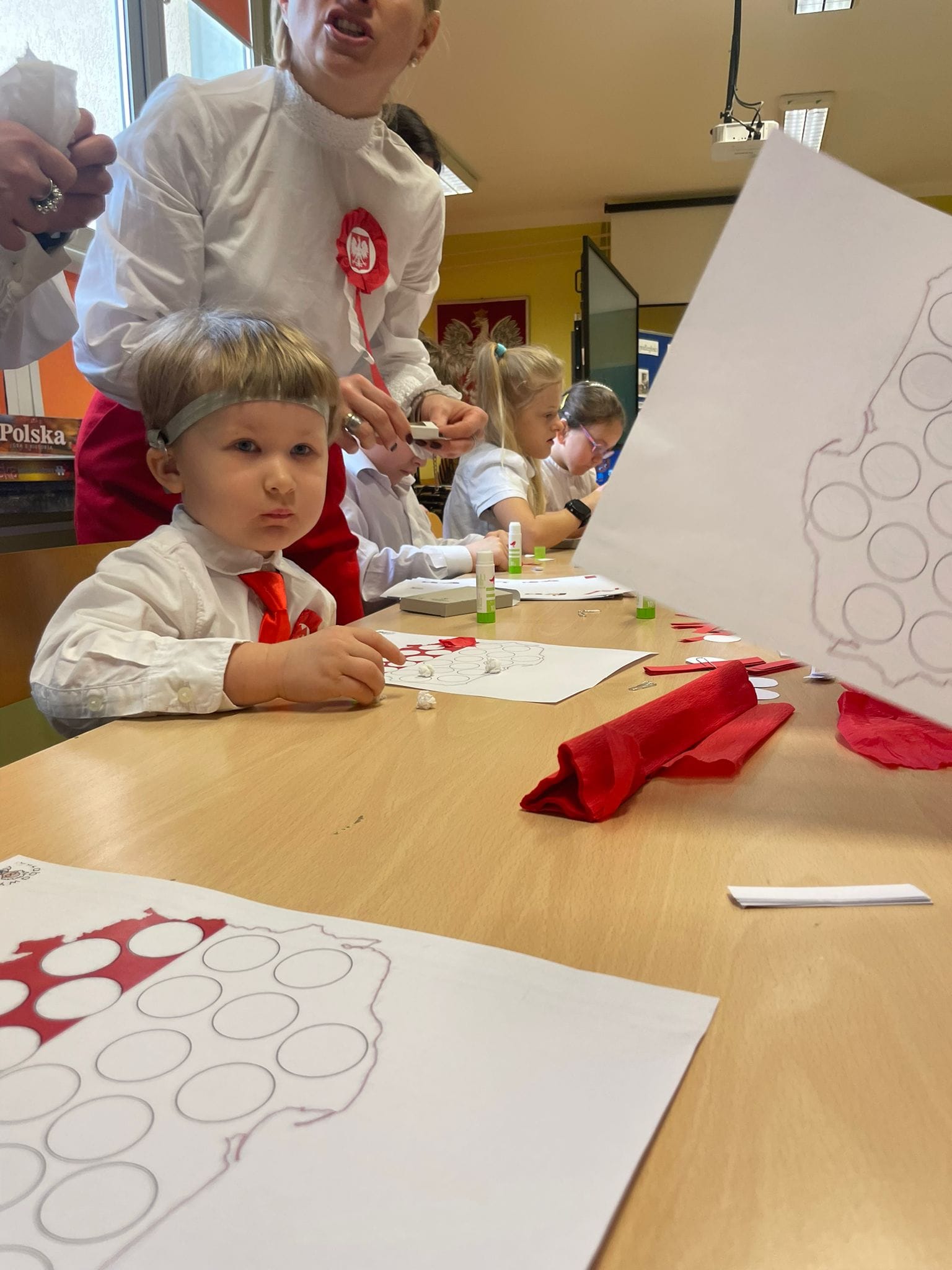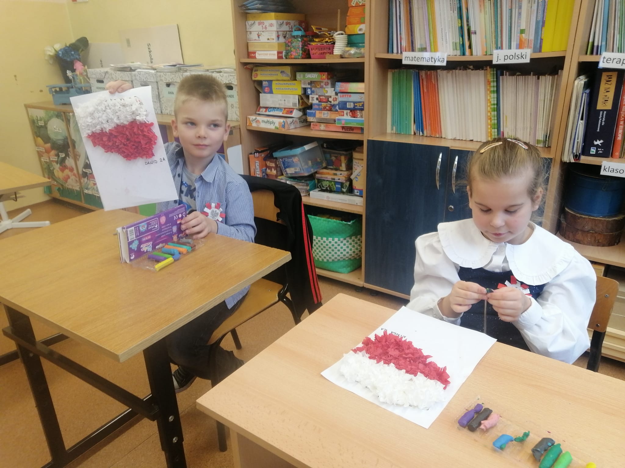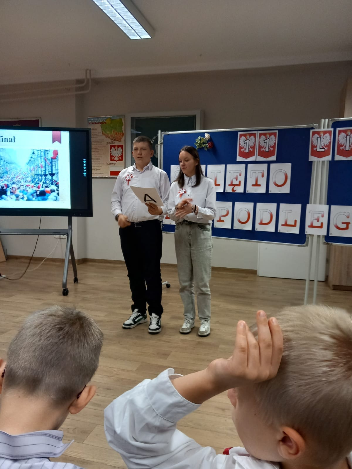 Uczniowie klas młodszych uczestniczyli w warsztatach z okazji Święta Niepodległości. Wspólnie odśpiewali hymn narodowy oraz przypomnieli sobie symbole narodowe.